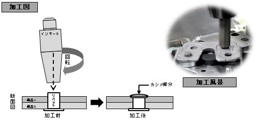 特にリベットを使用した 「スピンカシメ」 は、高い剛性力を持ちながら